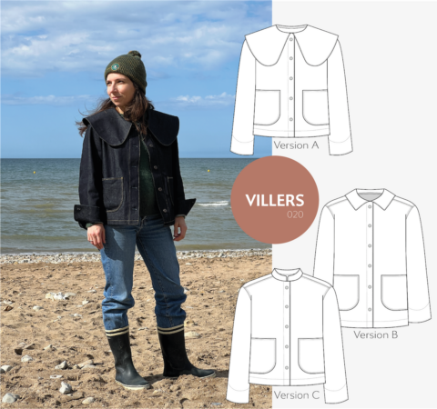 Je suis très heureuse de vous présenter mon dernier patron de couture, la veste Villers : une veste inspirée de la veste de travail traditionnelle et de l’univers du denim.